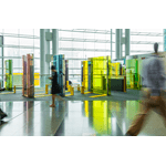 其設計為這個連繫的空間提供多層次視角,以視覺幻象為訪客帶來驚喜。玻璃板和鏡子的鋪排經過精密的幾何計算,並由一條黃線連接。參觀者站在黃線上,其影像經折射意想不到地在其它鏡子出現。